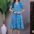Women’s Blue Printed Asymmetrical Hem Smocked A-Line Dress Midi Dresses